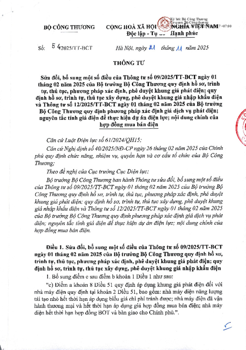 | Tiêu đề văn bản | Thông tư sửa đổi, bổ sung một số điều của Thông tư số 09/2025/TT-BCT ngày 01 tháng 02 năm 2025 của Bộ trưởng Bộ Công Thương và Thông tư số 12/2025/TT-BCT ngày 01 tháng 02 năm 2025 của Bộ trưởng Bộ Công Thương | ||