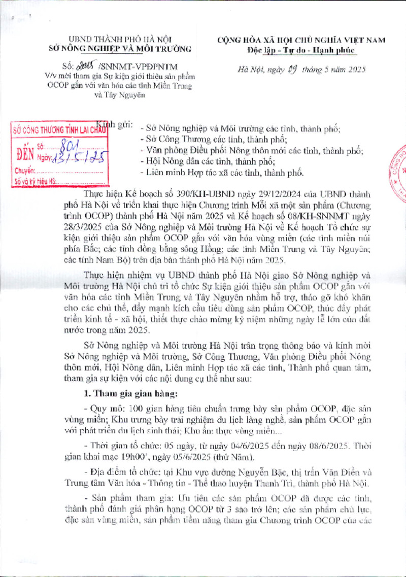 Tiêu đề văn bản | V,v mời tham gia sự kiện giới thiệu sản phẩm sản phẩm OCOP với văn hóa miền trung | ||