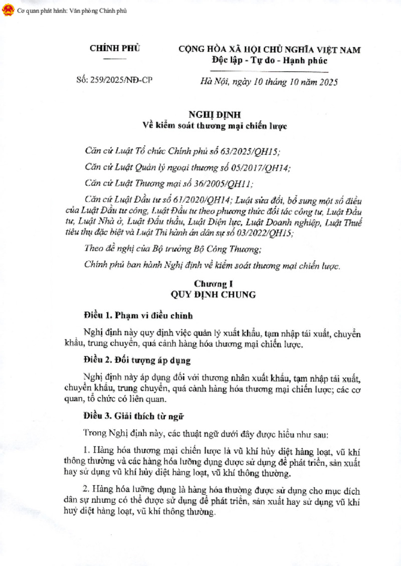 | Số hiệu | 259/2025/NĐ-CP | Cơ quan ban hành | 64dad9609d7c883f720a7d82 |