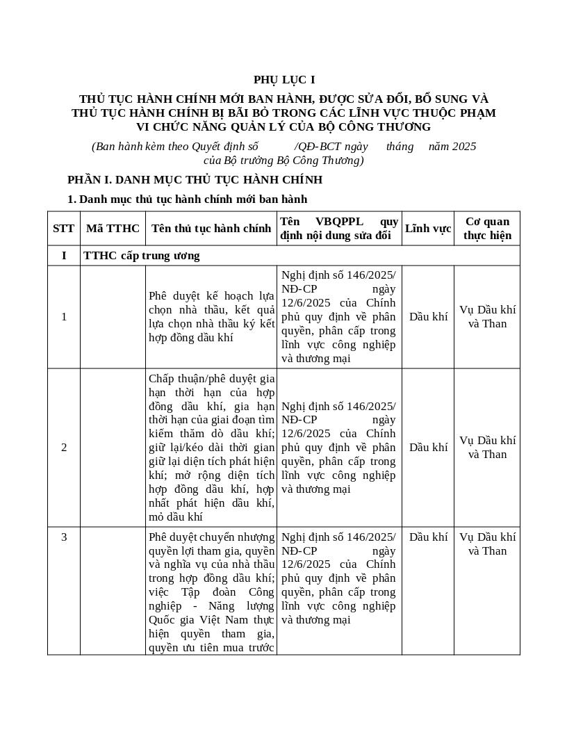 Tiêu đề văn bản | Quyết định về việc công bố Danh mục thủ tục hành chính mới ban hành; thủ tục hành chính được sửa đổi, bổ sung; thủ tục hành chính bị bãi bỏ trong các lĩnh vực thuộc phạm vi chức năng quản lý của Sở Công Thương tỉnh Lai Châu | ||
