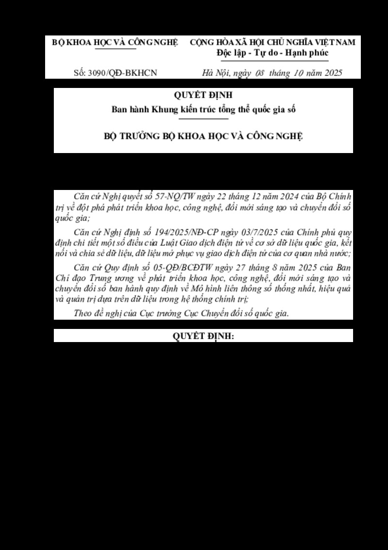 | Tiêu đề văn bản | Quyết định ban hành Khung kiến trúc tổng thể quốc gia số | ||