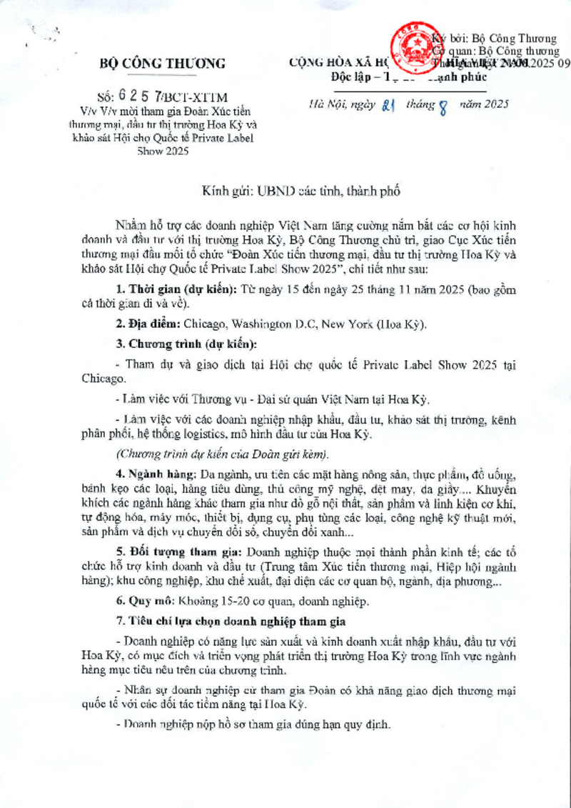 Tiêu đề văn bản | V,v mời tham gia đoàn xuc tiên thương mại, đầu tư thị trường Hoa Kỳ và khảo sat Hội chợ quôc tê.... | ||