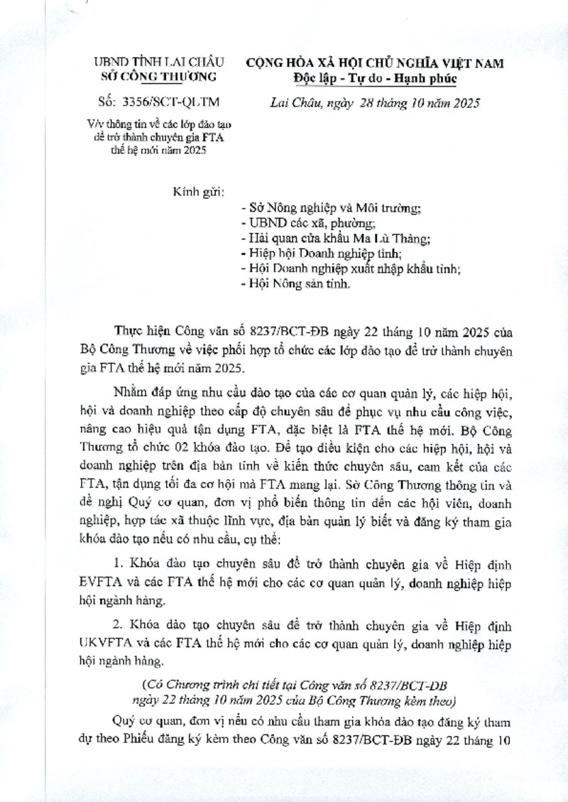 | Tiêu đề văn bản | Về việc thông tin về các lớp đào tạo để trở thành chuyên gia FTA thế hệ mới năm 2025 | ||